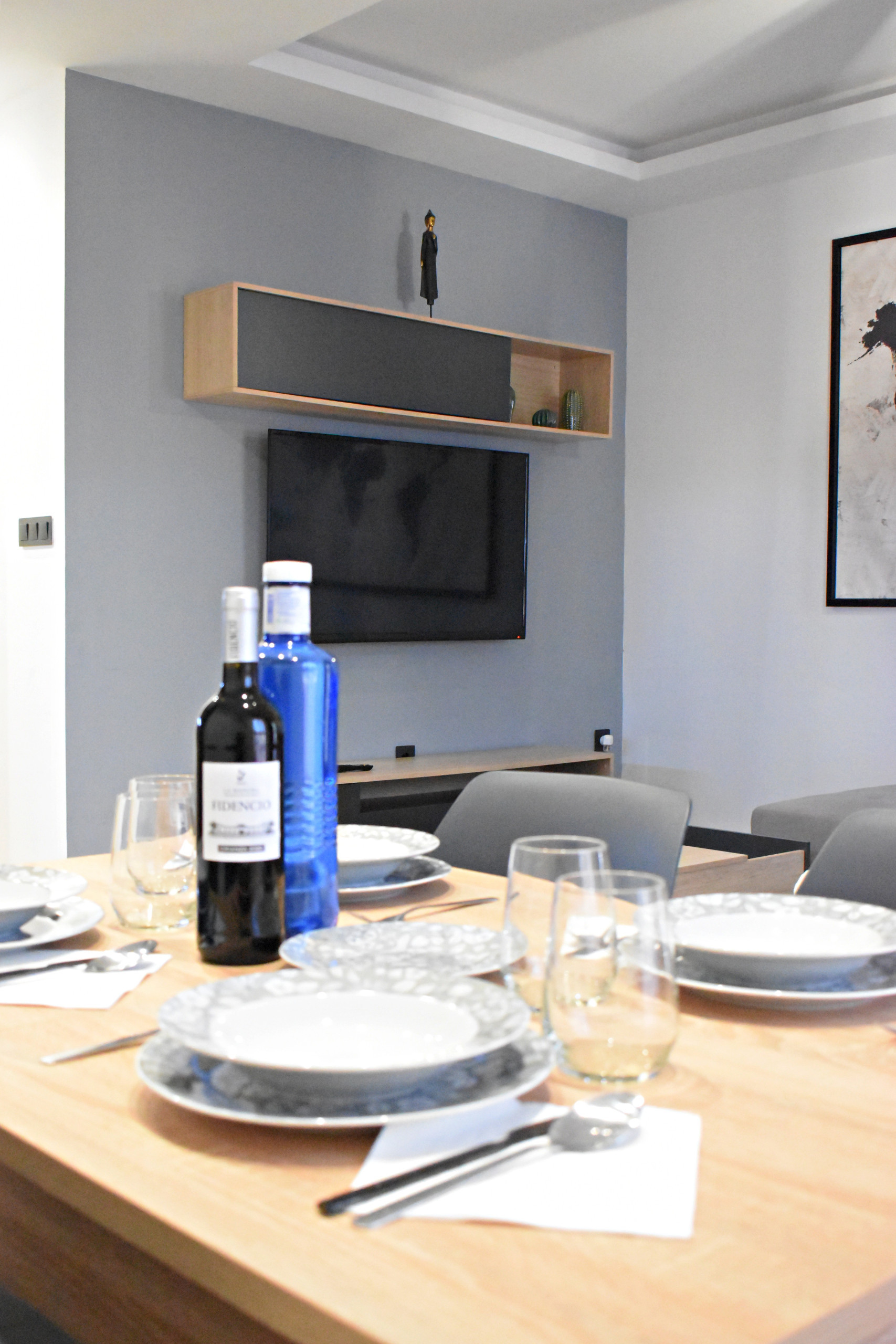 The flat has two bedrooms and two bathrooms, one of which is en suite, a spacious living-dining room and a fully equipped open-plan kitchen.